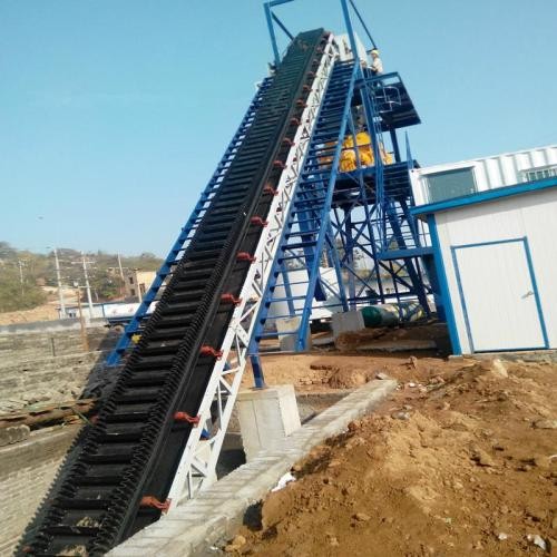 波狀擋邊輸送帶:在輸送機中起曳引和承載作用。波狀擋邊、橫隔板和基帶形成了輸送物料的"閘"形容器,從而實現(xiàn)大傾角輸送。